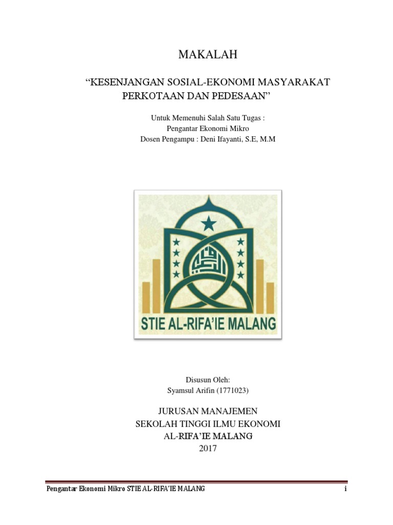 Makalah Kesenjangan Sosial Ekonomi Masyarakat Pedesaan Dan Perkotaan