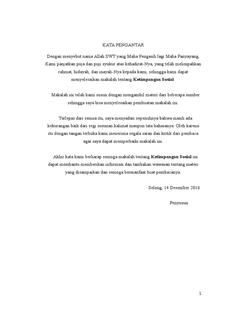 Kata Pengantar Ketimpangan Sosial
