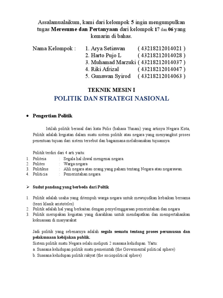 DOC) POLITIK DAN STRATEGI NASIONAL Oleh | Winda Sari - Academia.edu