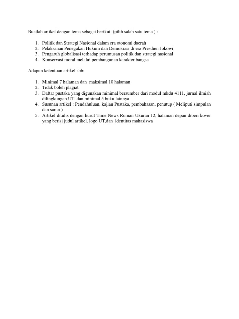 Buatlah Artikel Dengan Tema Sebagai Berikut