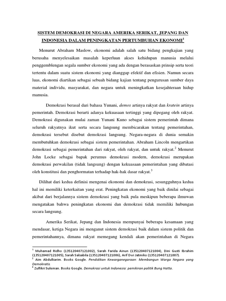 Analisa penerapan demokrasi di indonesia dengan amerika serikat
