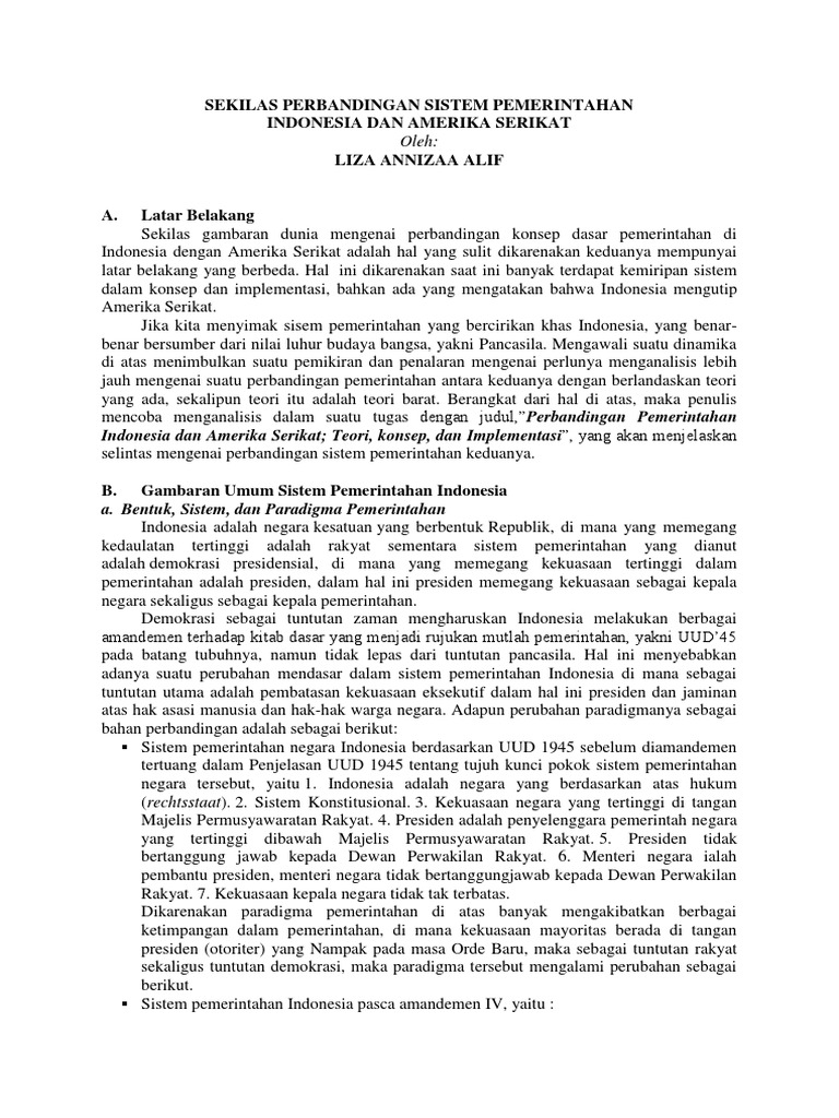 Sistem Pemerintahan Indonesia Dan Amerika Iling