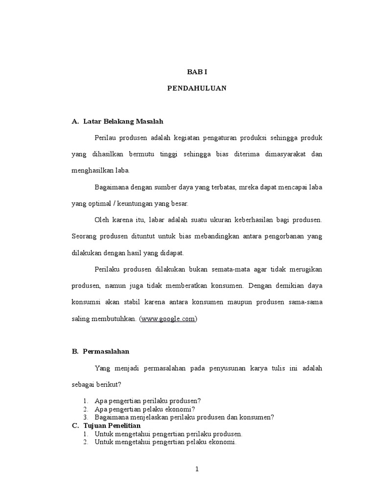 DOC) TEORI TINGKAH LAKU KONSUMEN DAN TEORI TINGKAH LAKU PRODUSEN MAKALAH Disusun untuk memenuhi tugas akhir semester mata kuliah Bahasa Indonesia | Baby Shin - Academia.edu
