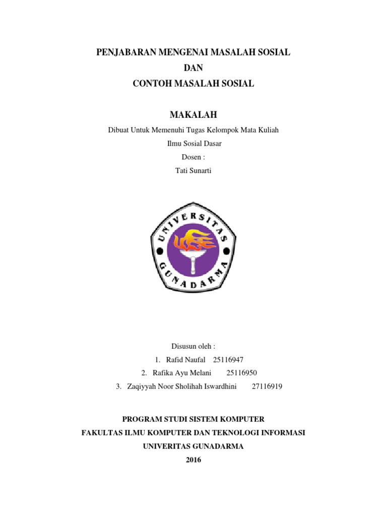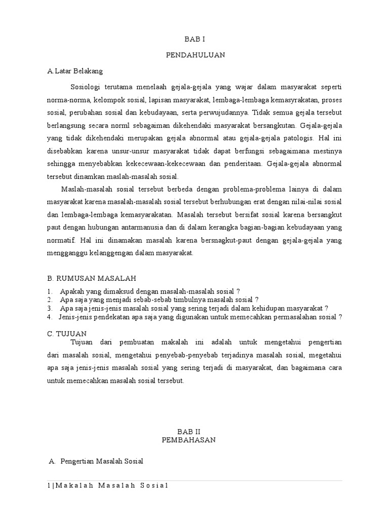Makalah Masalah Sosial ⋆ DOC | PDF ⋆ Download Contoh Makalah Lengkap