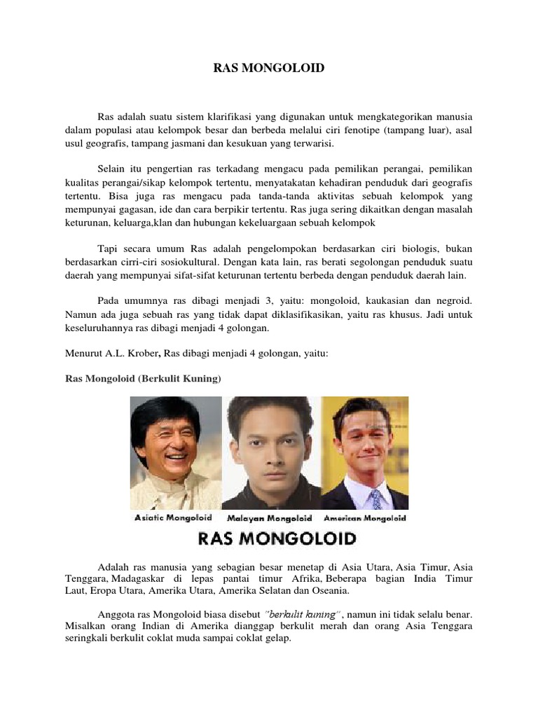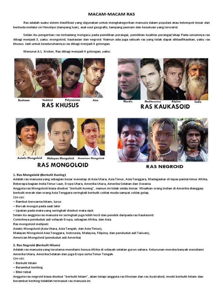 Pengertian Ras, Ciri, Dan Macam Macam Ras (Mongoloid, Kauka …