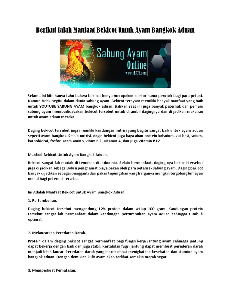 Berikut Ialah Manfaat Bekicot Untuk Ayam Bangkok Aduan