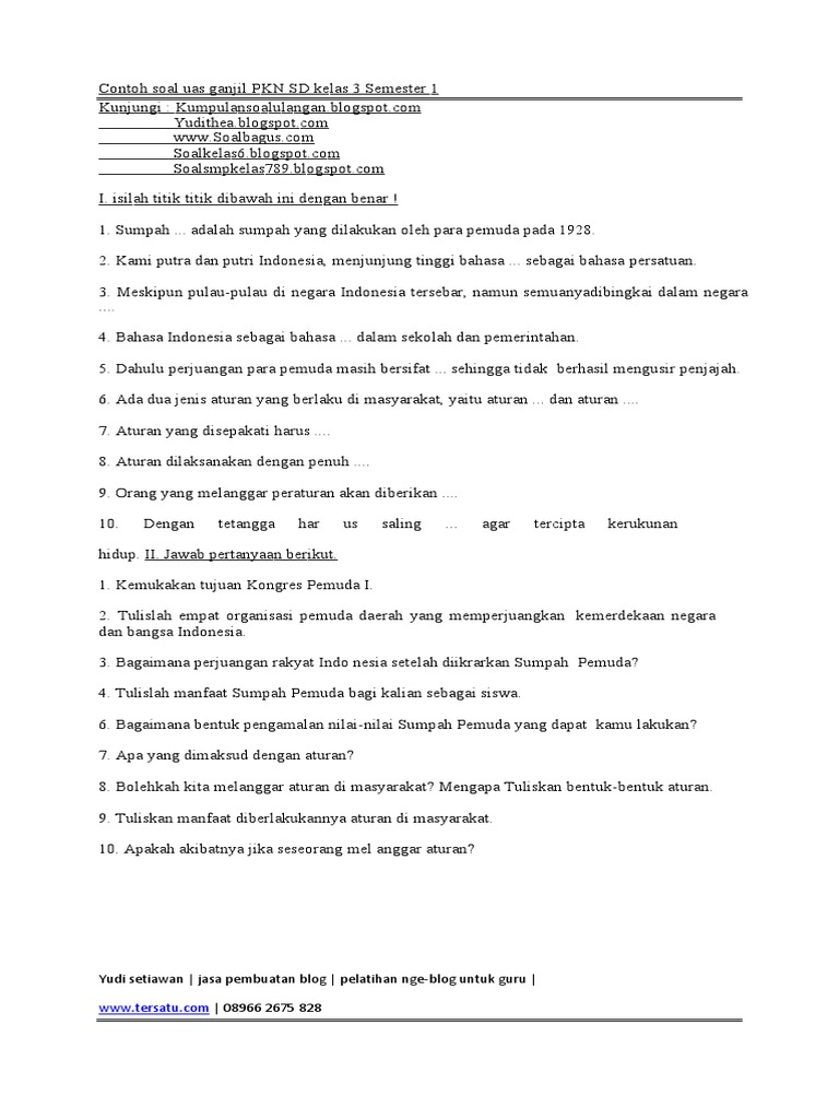 Soal dan Jawaban SD kelas 1-3 di TVRI, Rabu 28 Oktober 2020 …