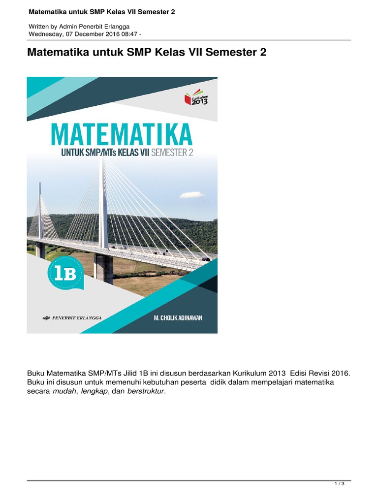 Matematika 1B untuk SMP kelas 7 semester 2 | Shopee Indonesia