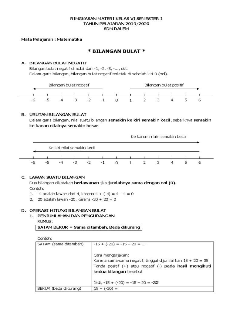 Latihan Soal Operasi Hitung Bilangan Bulat Matematika Kelas 6 …