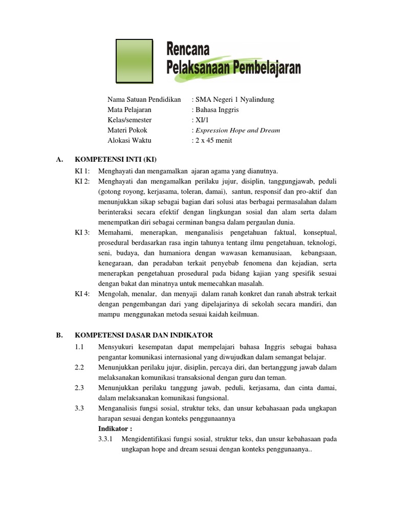 DOC) RPP Bahasa Inggris SMA kelas XI | Eko scout - Academia.edu