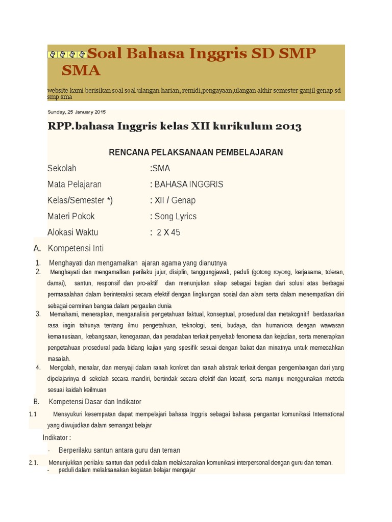 DOC) RPP BAHASA INGGRIS KELAS XII LENGAKP | Rpp Kurikulum2013 - Academia.edu
