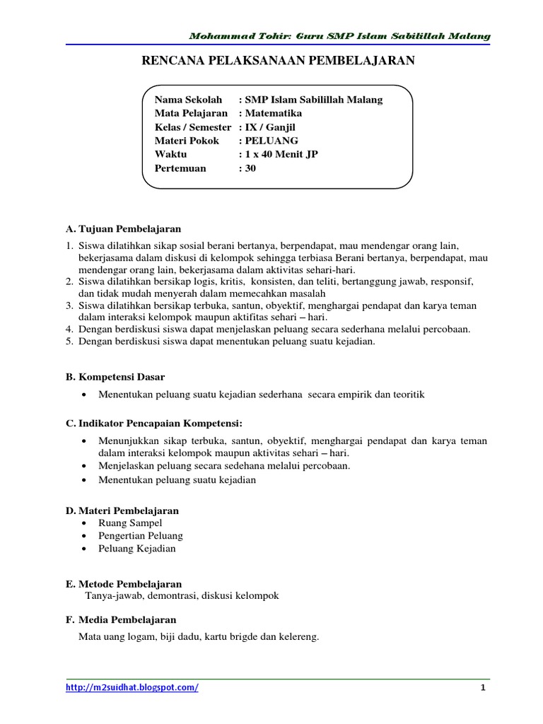 RPP PJJ Matematika Kelas 9 SMP Laman Guru Berbagi Kemdikbud