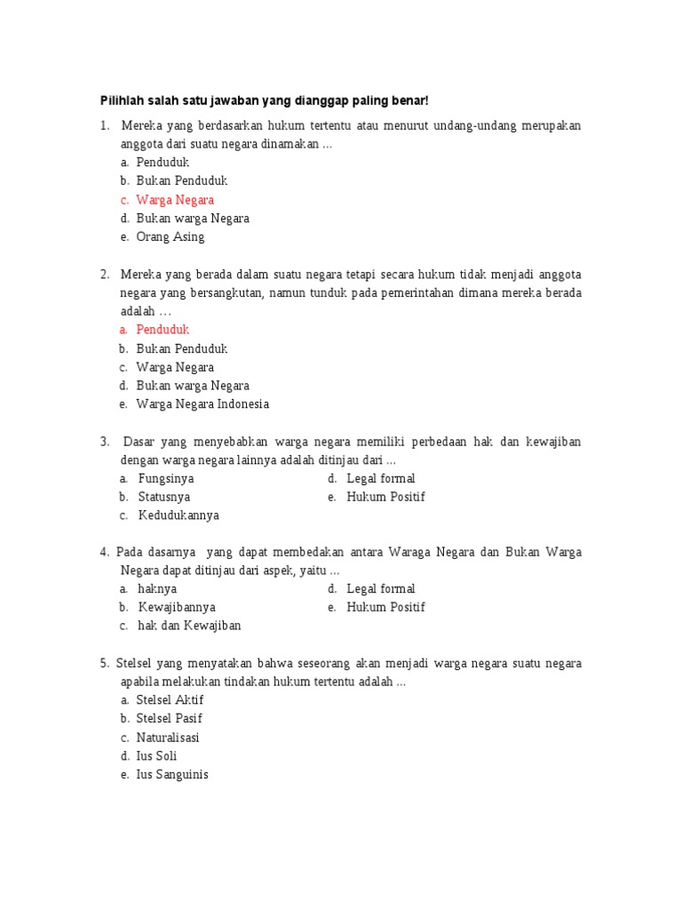 DOC) Contoh Soal Mata Pelajaran PKn SD Kelas 5 | Afifah Sweet’s - Academia.edu