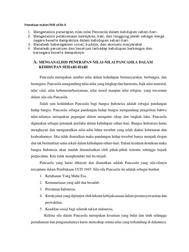 Materi Pelajaran PKn Kelas 6 Semester 1/2 Lengkap