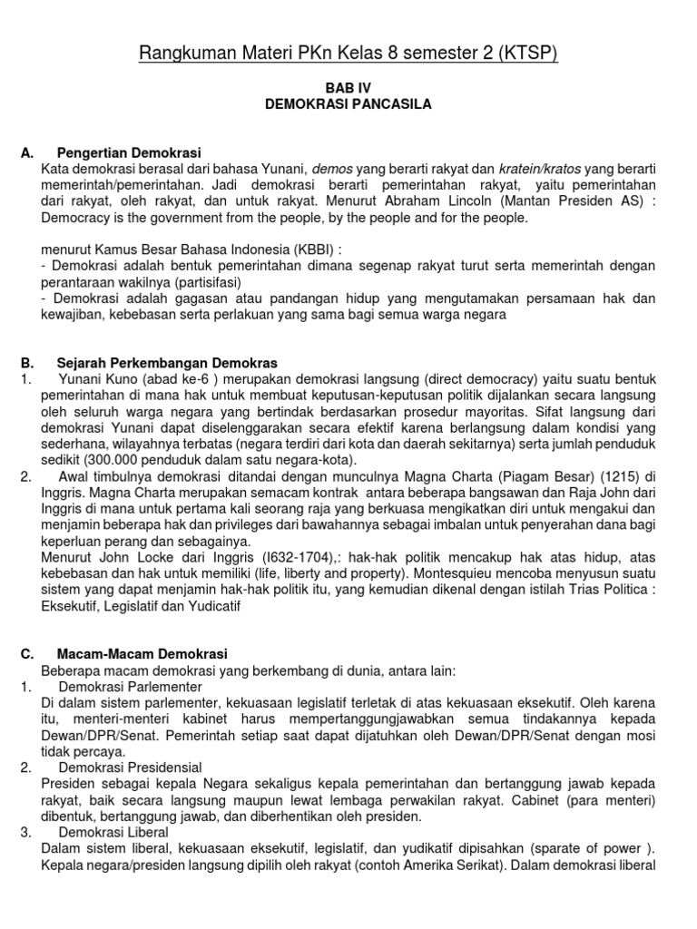 Rangkuman Pkn Kls 8 Semester 2 Bab Demokrasi