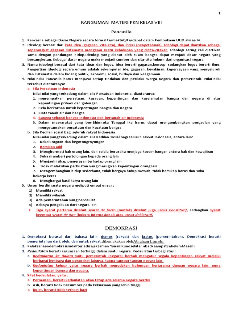 Rangkuman Materi PPKN Kelas 8 Bab 1 - Portal Edukasi