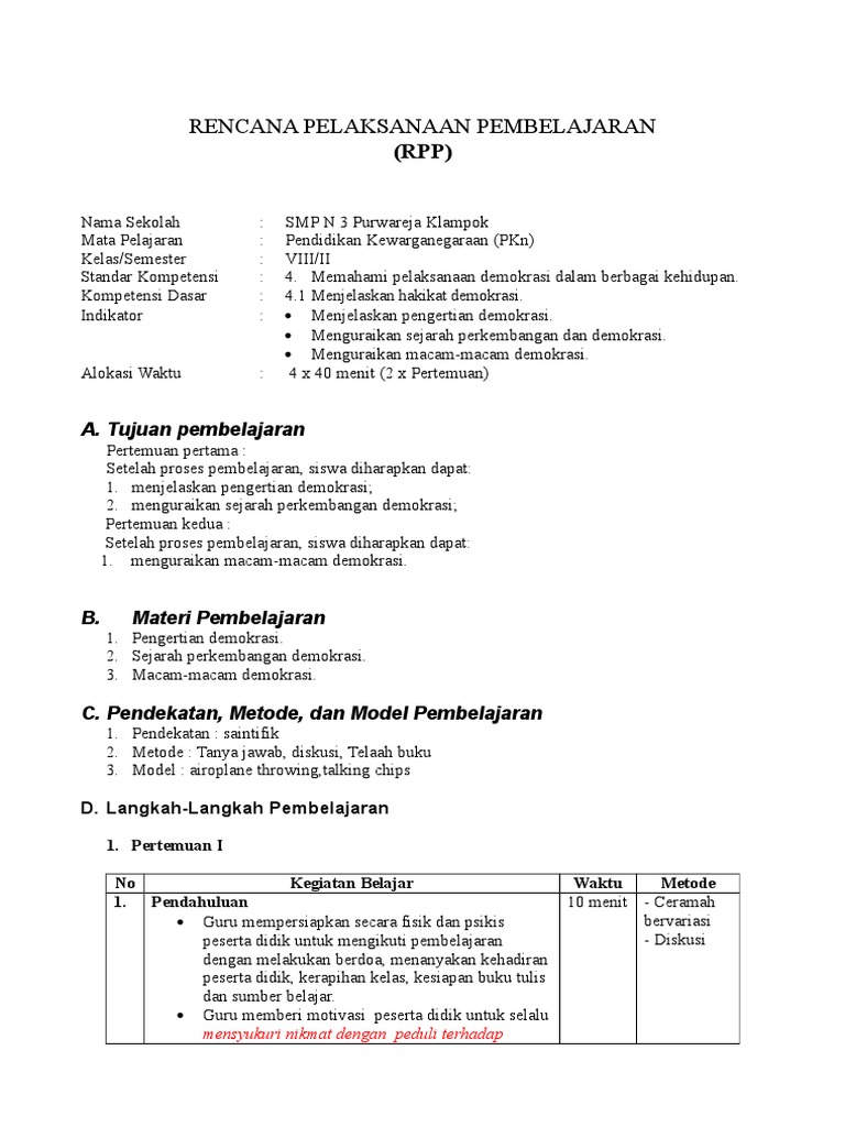RENCANA PELAKSANAAN PEMBELAJARAN - .Web viewMata Pelajaran : Pendidikan Kewarganegaraan (PKn) Kelas/Semester - [DOC Document]