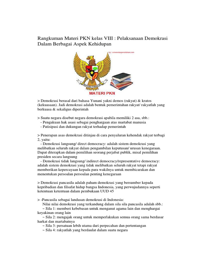 Materi Pkn Kelas 8 Semester 2 Tentang Demokrasi