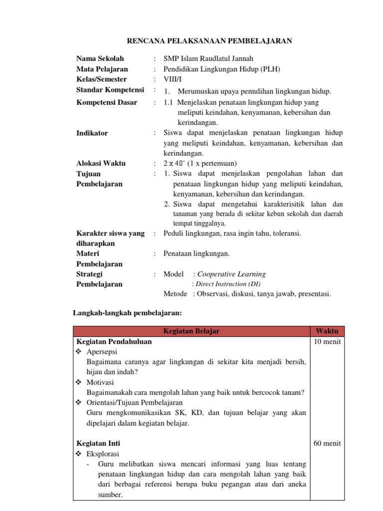 RPP PLH Pendidikan Lingkungan Hidup Kelas 3 Terbaru - dicariguru.com