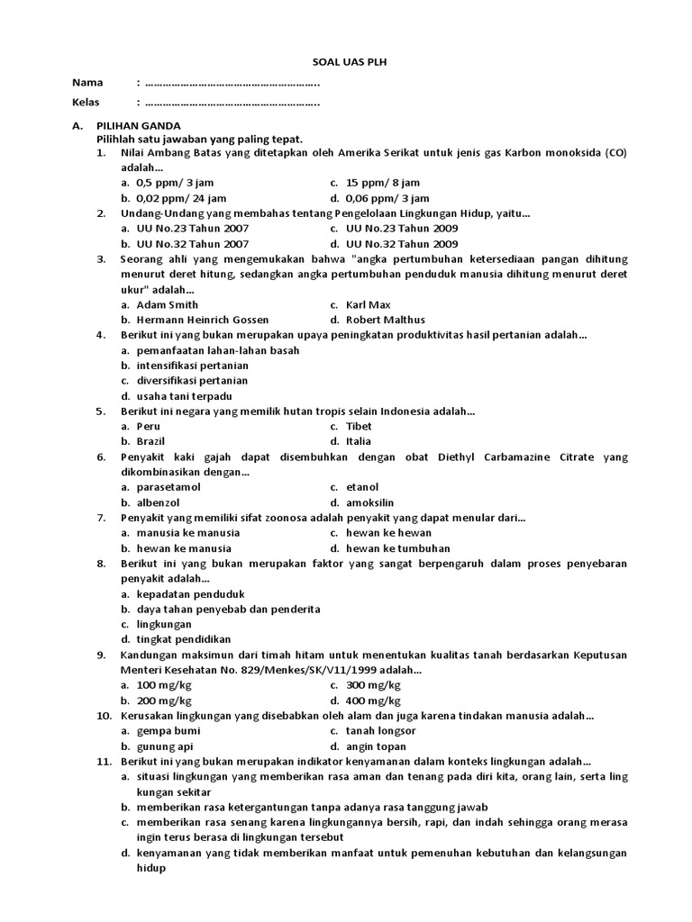 DOC) soal pendidikan lingkungan hidup kelas 4 | fahmyy cappucint …