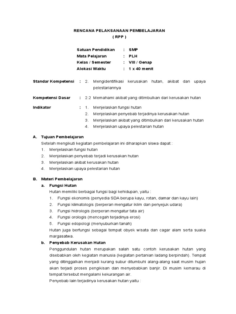 Rpp Plh Smp Kelas Vii