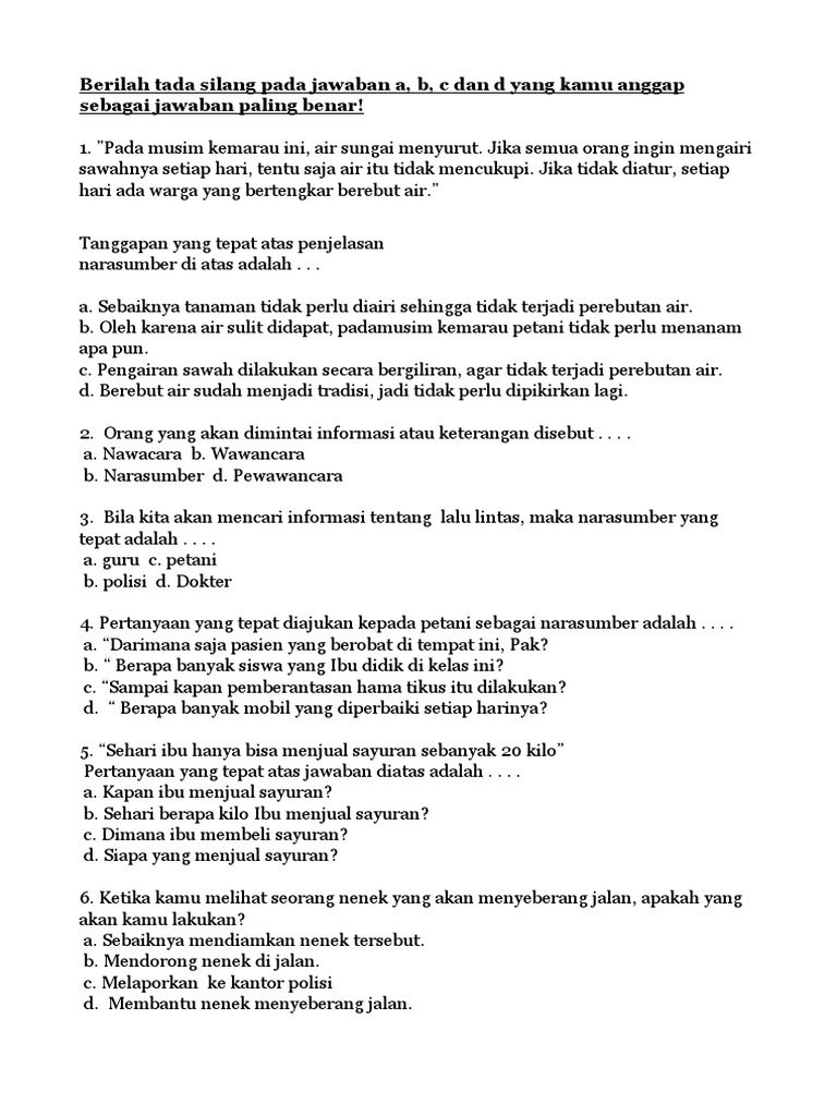 Soal Bahasa Indonesia Wawancara Sd