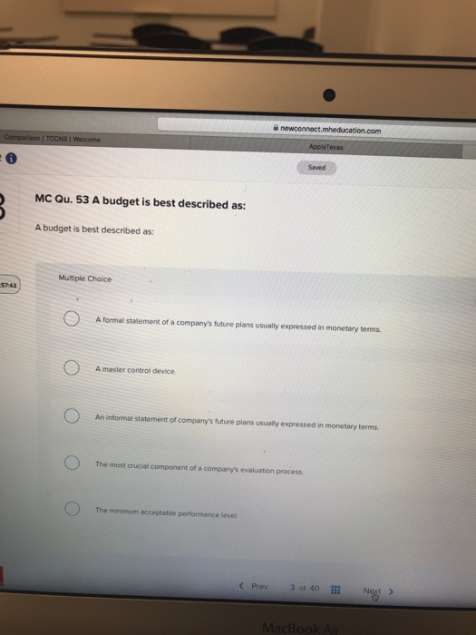 Solved: E Newconnect.m 0 Saved MC Qu. 53 A Budget Is Best …