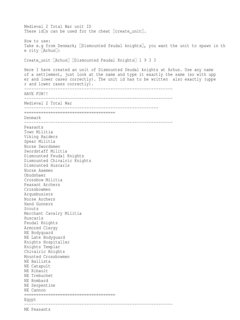 Medieval 2 total war unit ID’s - YouTube