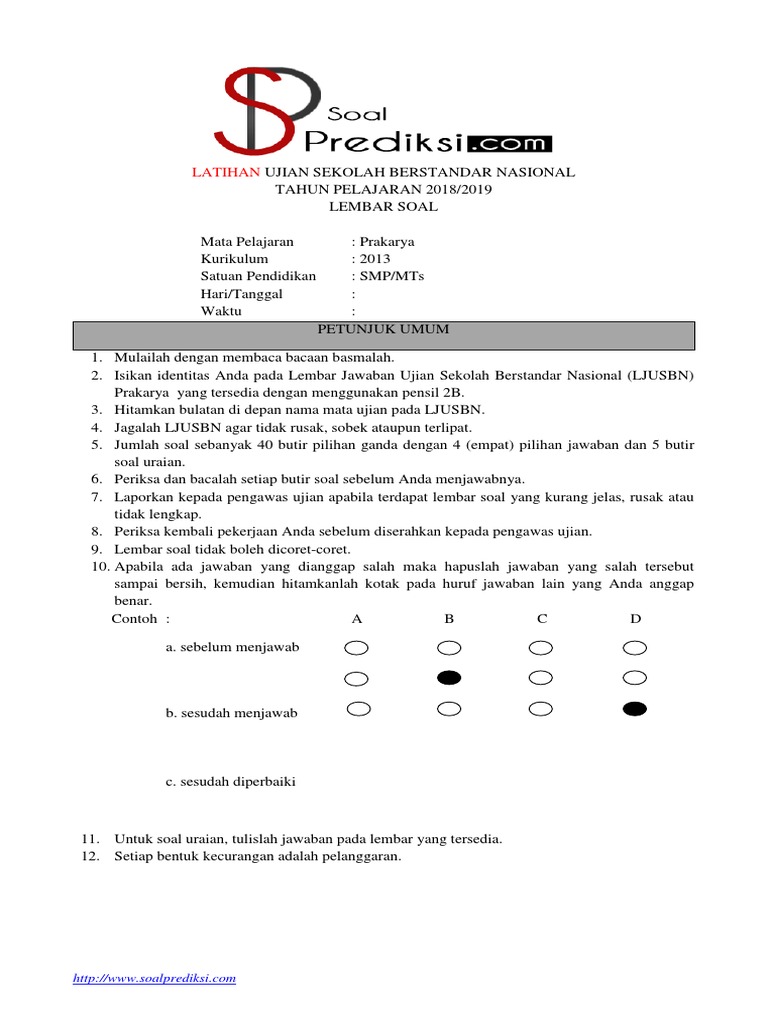 Latihan Soal dan Kunci Jawaban USBN Prakarya SMP 2021 K13