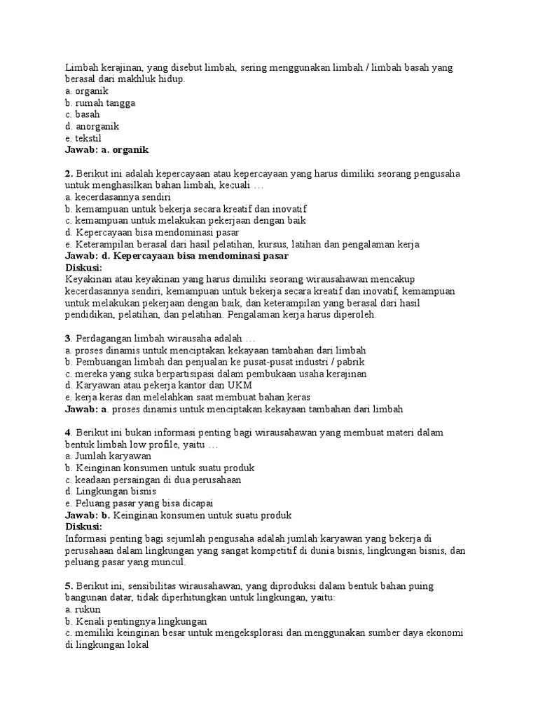 Soal Kewirausahaan Kelas 11 Beserta Kunci Jawabannya Lengkap