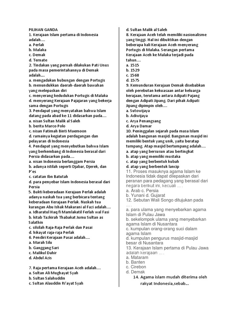 Coba 5 Contoh Soal Kerajaan Islam Kelas X Ini Agar Nilai Bagus!
