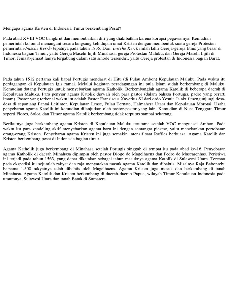 faktor yang mendorong agama kristen pesat berkembang ke indonesia bagian timur - Brainly.co.id