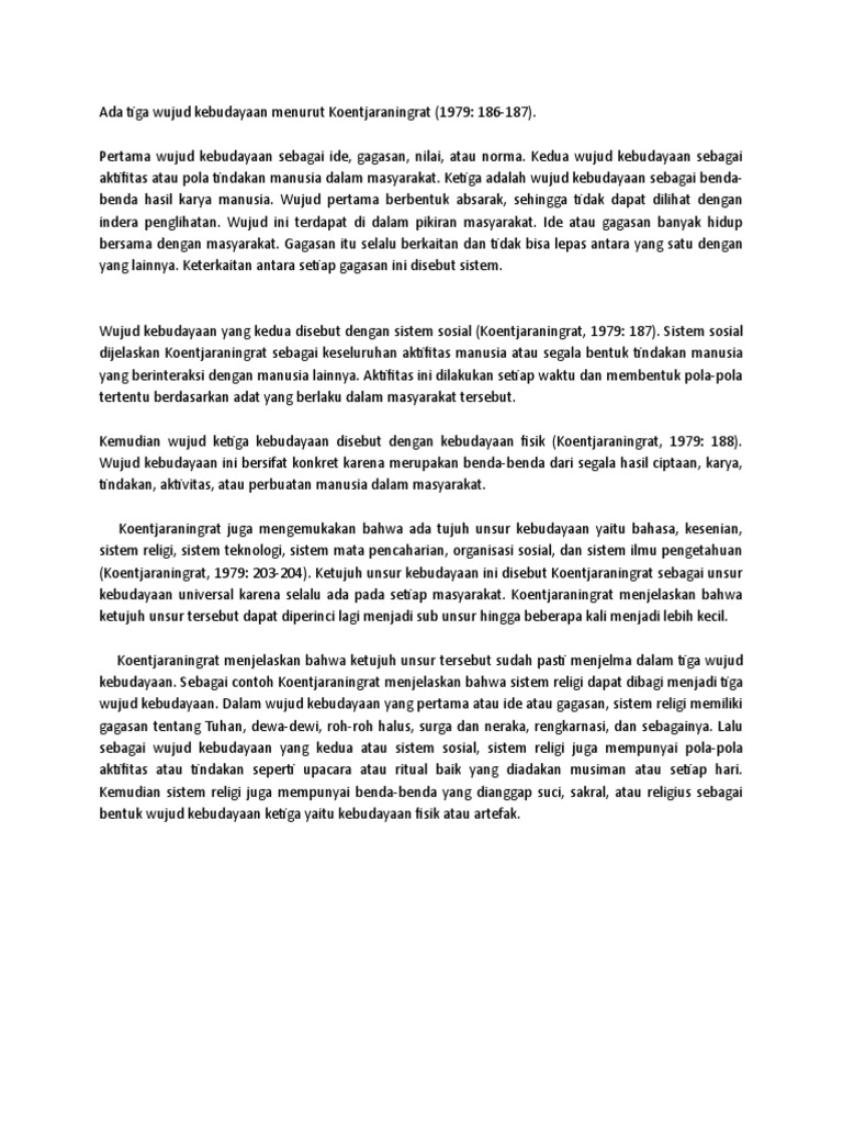 Ada tiga wujud kebudayaan menurut Koentjaraningrat.doc