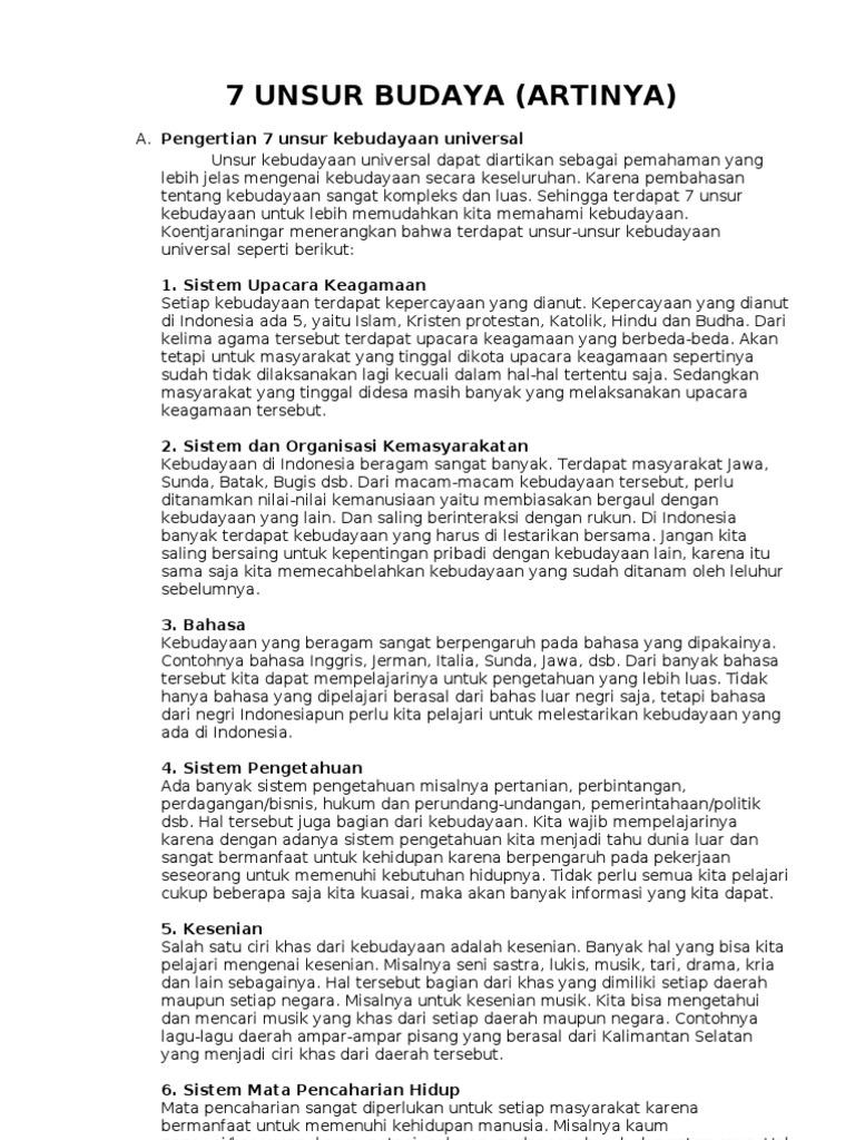 DOC) 7 UNSUR KEBUDAYAAN | Via Callizta - Academia.edu
