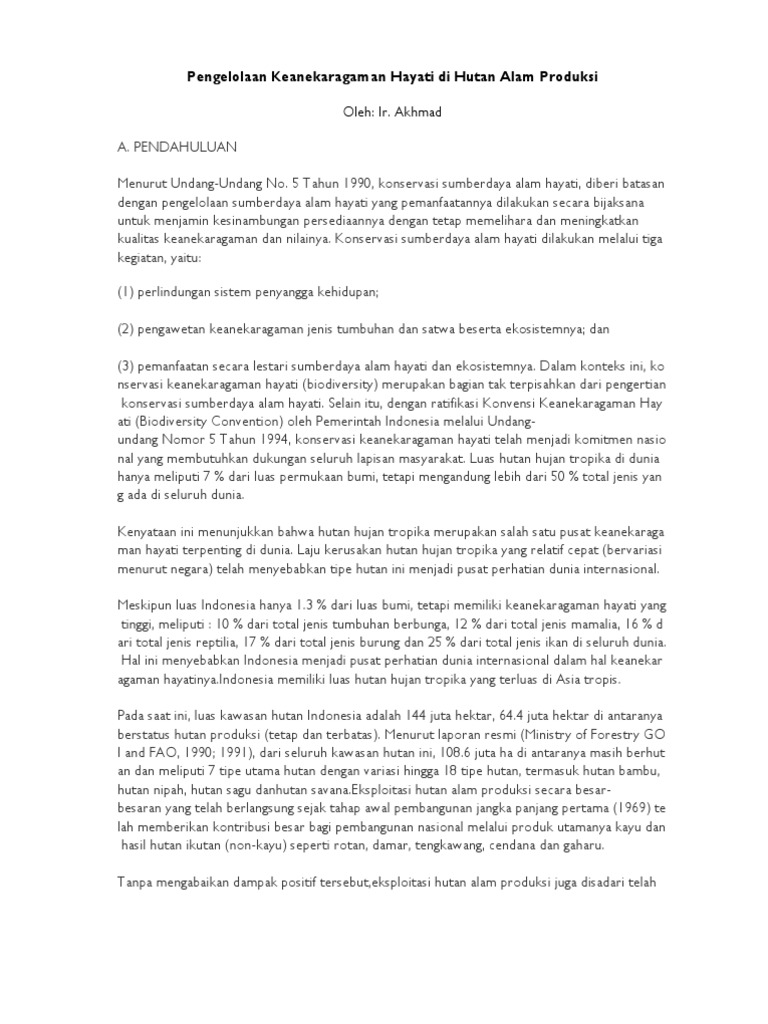 Pengelolaan Keanekaragaman Hayati Di Hutan Alam Produksi