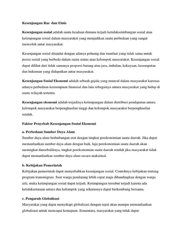Kesenjangan Sosial Dan Ekonomi Yang Terdapat Di Masyarakat Akan …