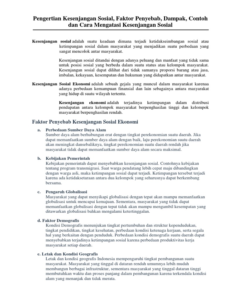 Pengertian Kesenjangan Sosial, Faktor Penyebab, Dampak, Contoh dan …