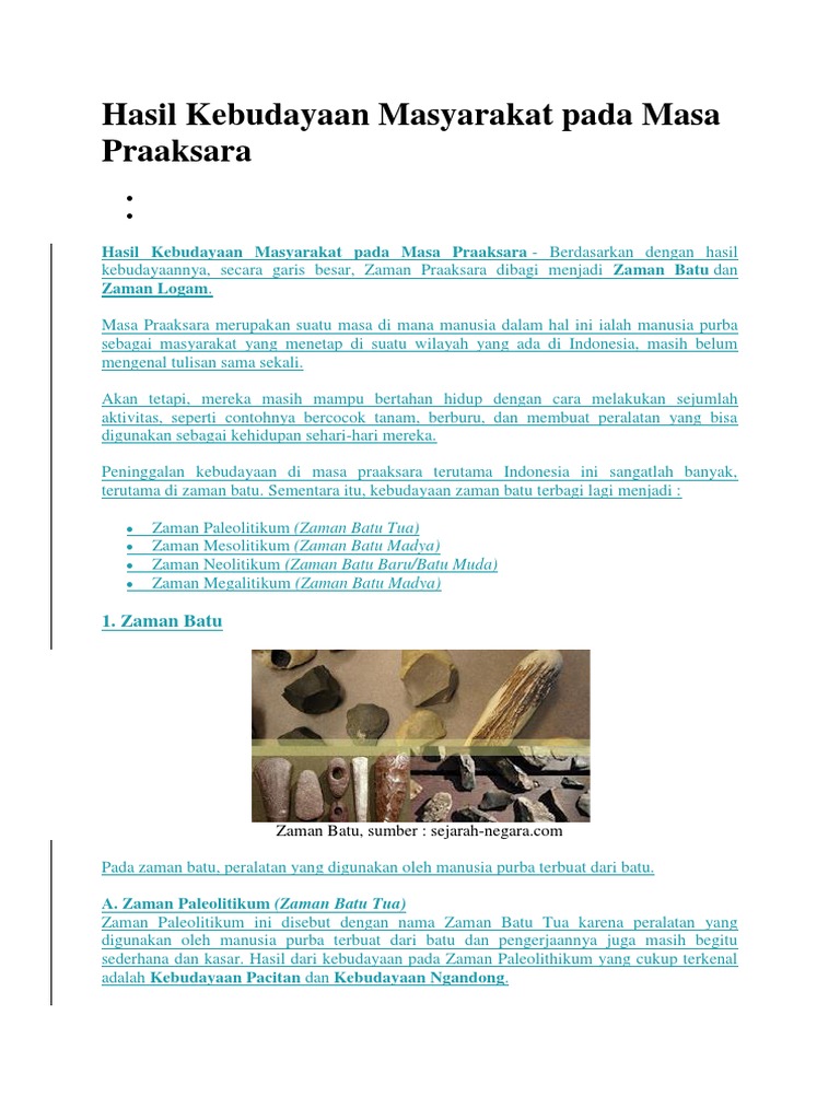 Hasil Kebudayaan Masyarakat pada Masa Praaksara - Habibullah Al Faruq