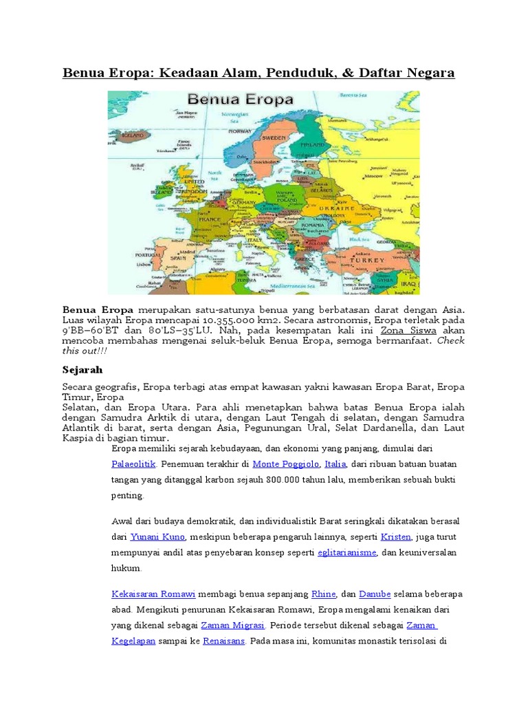 Benua Eropa: Keadaan Alam, Penduduk, & Daftar Negara