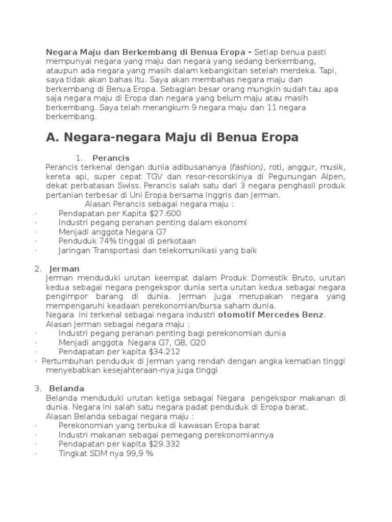 Contoh negara maju di benua Eropa | Notafraid in investing