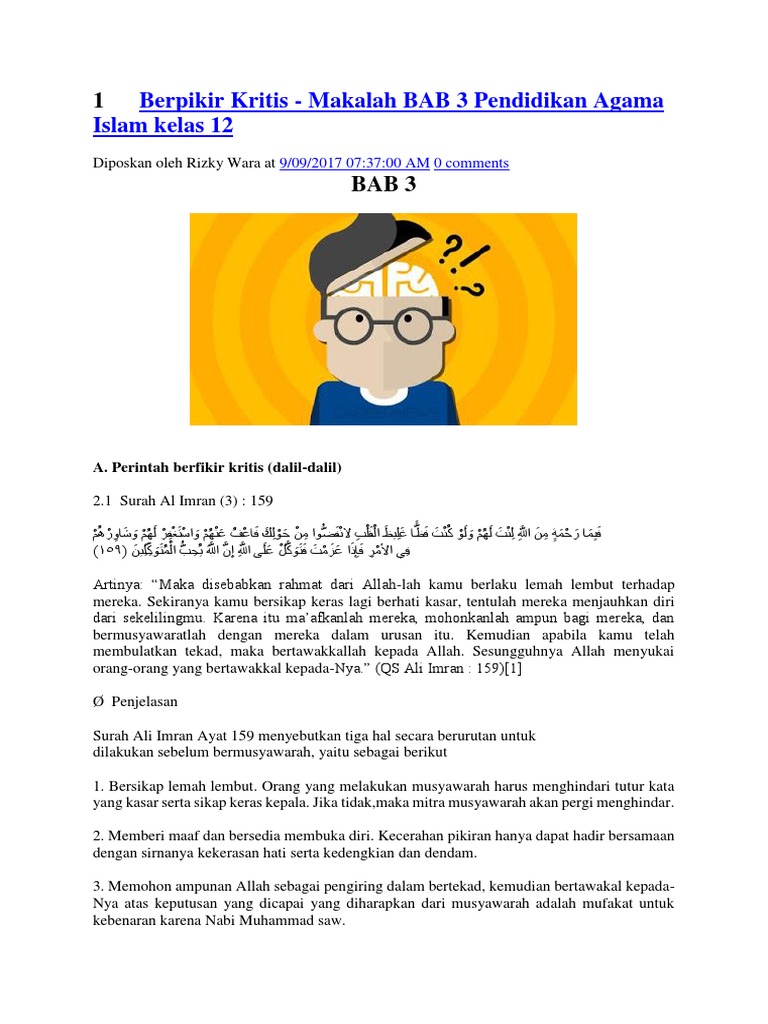 Berpikir Kritis - Makalah BAB 3 Pendidikan Agama Islam kelas 12