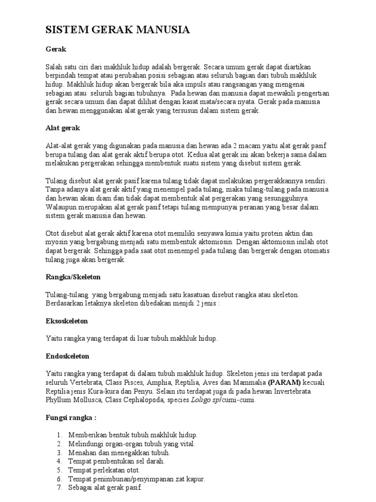 Rangkuman SISTEM GERAK MANUSIA (Pengertian, Fungsi, Tulang Sebagai …