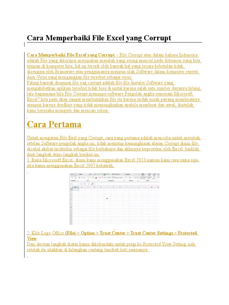Cara Memperbaiki File Excel Yang Rusak Karena Virus
