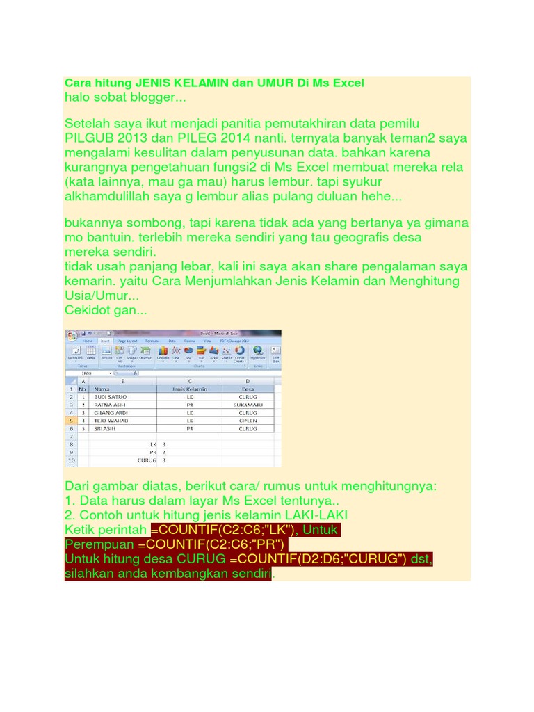 Cara Hitung Jenis Kelamin Dan Umur Di Ms Excel