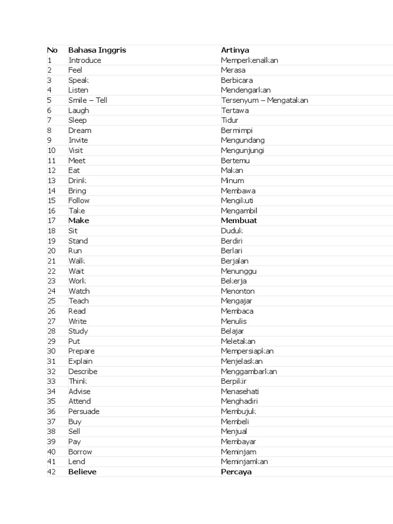 700 Kosakata Bahasa Inggris Bagi Pemula (RECOMMENDED) yang Sering Digunakan Sehari-hari | Salamadian