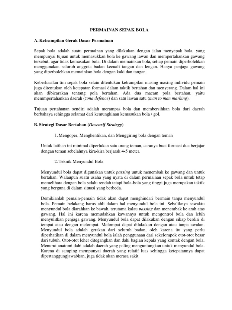 TEKNIK DASAR DALAM PERMAINAN SEPAK BOLA dan CARA MELAKUKANNYA …