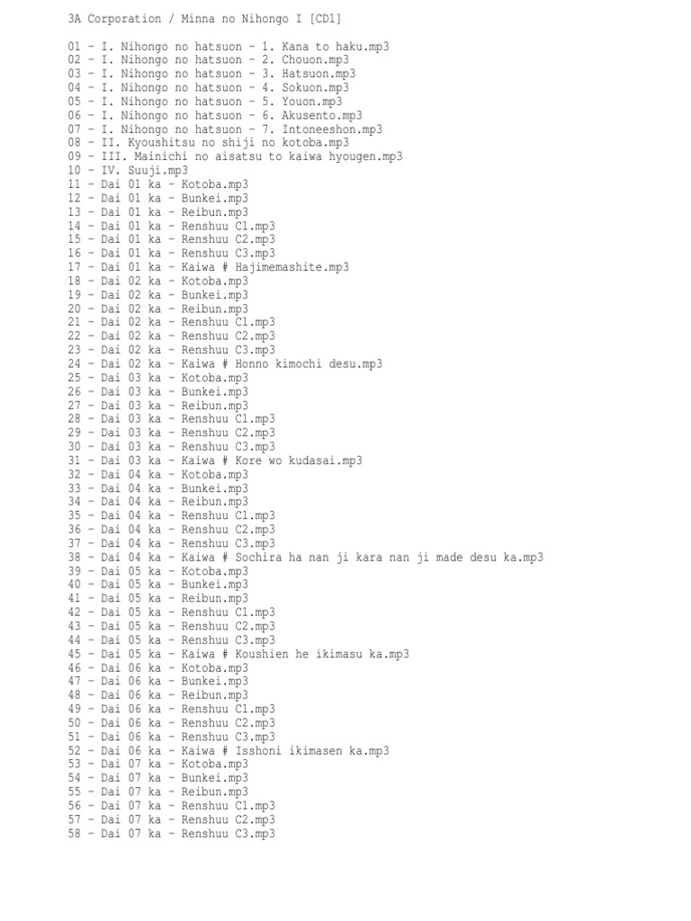 Minna No Nihongo I & II - CD Tracklist | Linguistic Typology | Linguistics