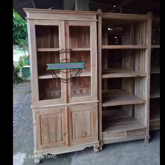 Lemari dapur kayu jati - lemari rak piring ukir mentahan | Shopee Indonesia