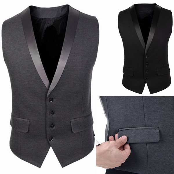 Fashion Pria: Rompi Jas Berbahan Katun dengan V-Neck dan Model …