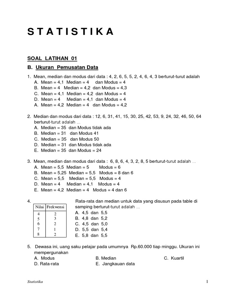 Contoh Soal Statistika Mean Median Modus Data Kelompok - Bagikan …